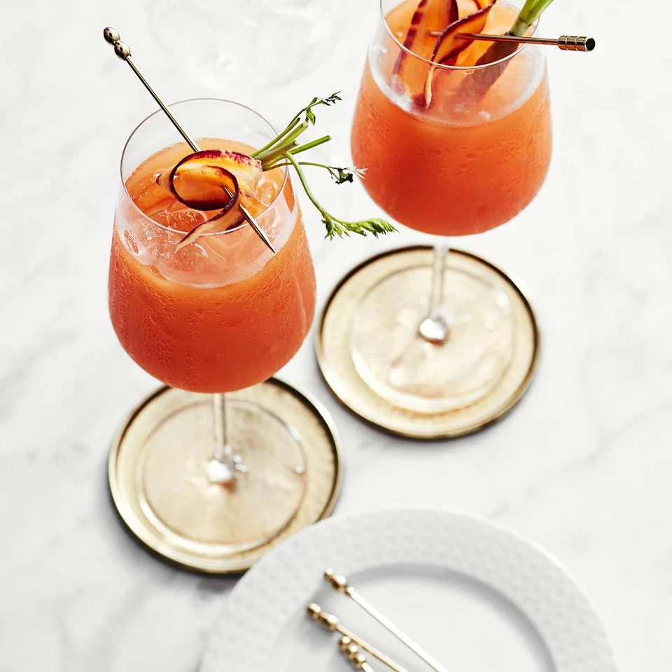 The warmth and beauty of antiqued brass make our coasters stand out on the bar or table. Made by skilled metal artisans, they’re machine shaped of stainless steel. The gold plating, antiquing and hammering is all done by hand, giving each coaster a unique appearance. Perfect partners for any glassware or stemware, the coasters are designed to protect surfaces from condensation and drips.