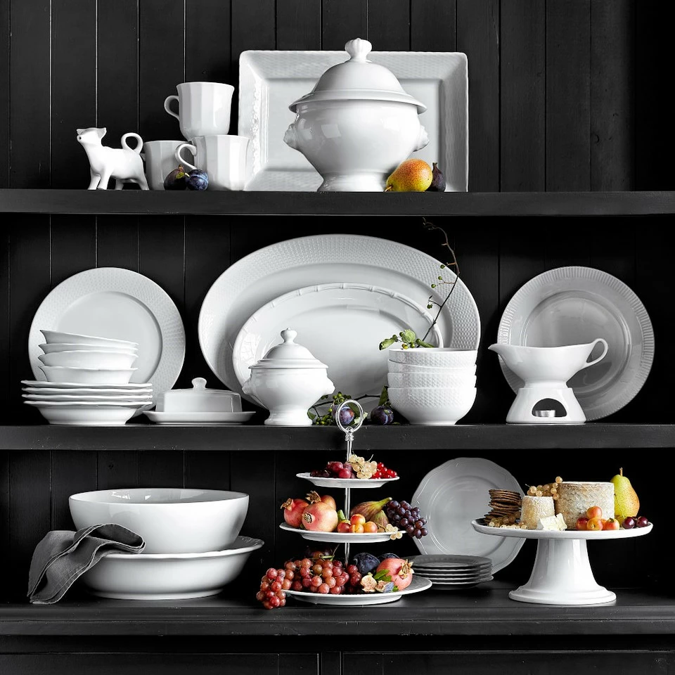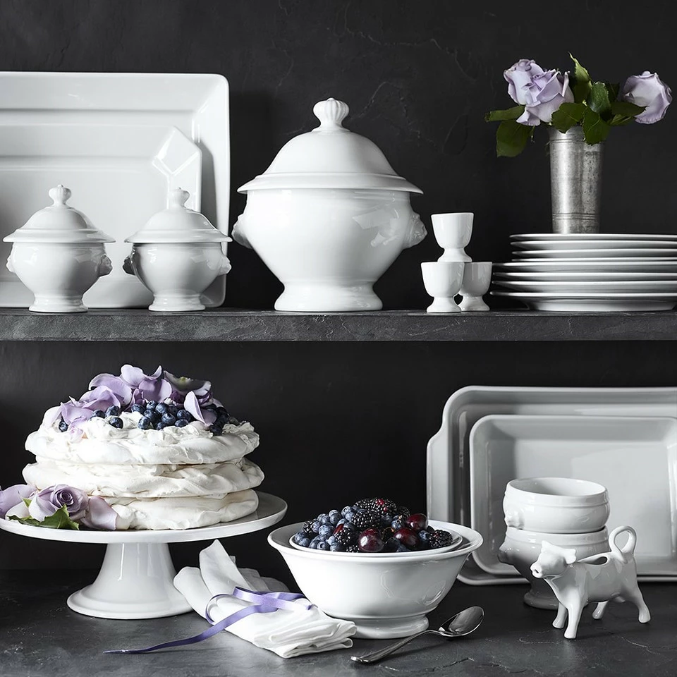 With her jaunty stride and curly tail, this porcelain cow will bring a smile to guests at your breakfast table. The cow holds milk in her belly and, when tipped, pours from her mouth. Made in France by Apilco, a manufacturer of fine porcelain for over a century, the milk jug is microwave and dishwasher safe. 118 ml cap., 12 cm high.