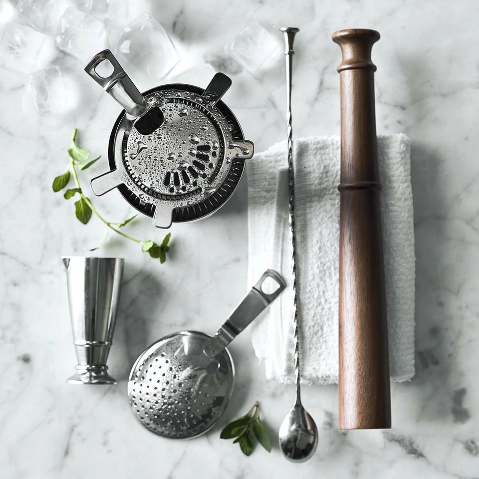 - Hawthorne strainer fits inside shaker or mixing glass to strain cocktails.