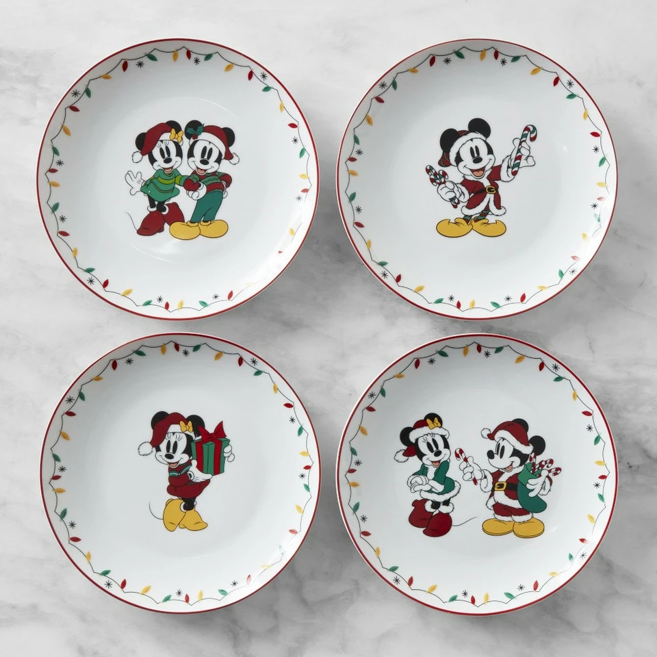 Spend Christmas with Mickey and Minnie Mouse™ without leaving home. Each of our vintage-style porcelain plates features a colourful border of Christmas lights and a unique design of the charming cartoon characters decked out for the season.