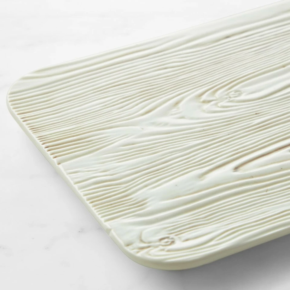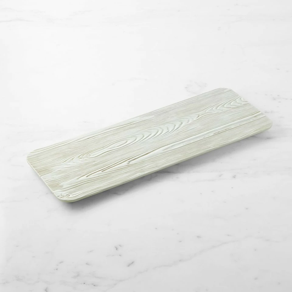 Artisans reinterpret the beauty of natural wood in our Faux Bois cheese board. Crafted of stoneware, it’s handpainted with a textural, patterned glaze that echoes wood grain. The board also features a hand-applied antiqued finish that helps showcase cheese, fruit and bread.