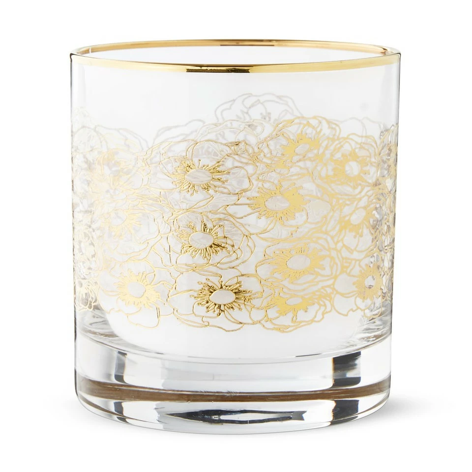 Handpainted in gold, an ornate floral design lends grandeur to our dazzling barware collection. Each mouth-blown double old-fashioned glass is cut and polished by hand, then etched and expertly painted by Turkish artisans. These versatile glasses are ideal for both mixed drinks and fine liquor served neat.