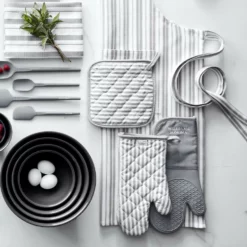 Williams Sonoma Bay Stripe Oven Mitt & Potholder Set – Bright Blue