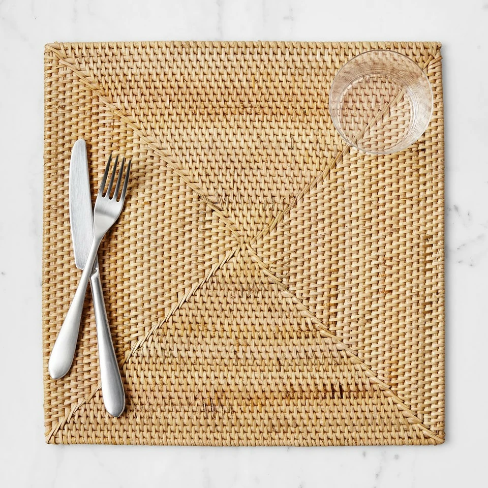 Hand woven of durable rattan, our square placemat adds natural colour and organic texture to the table. Its versatile style creates a neutral backdrop for both white and vibrant dinnerware.
