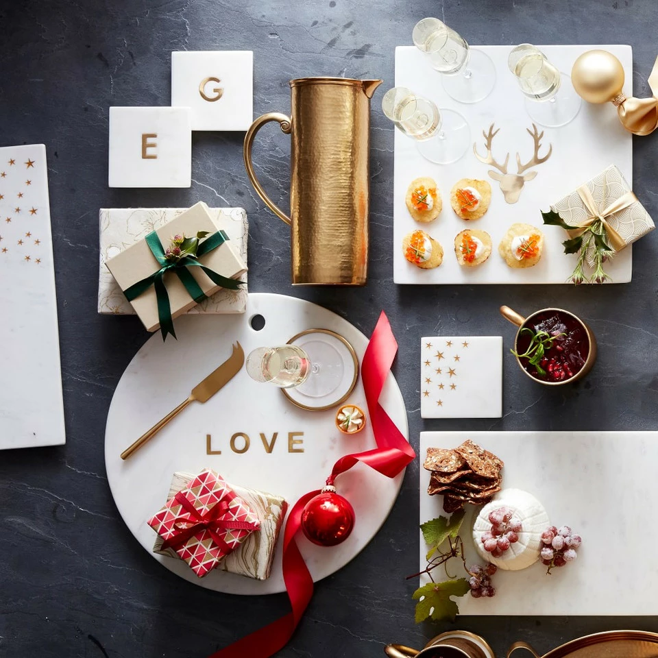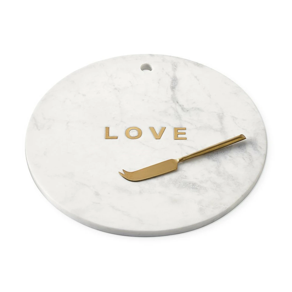 Bring the love – and love of cheese – to every dinner party. Handcrafted of marble and brass, this cheese board is embedded with antique brass lettering that declares “LOVE.” Elegant and subdued in style, the set includes a matching brass cheese knife that makes it the perfect gift.