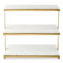 Our tiered stand showcases the rich contrast of white marble and polished brass. Marble’s natural elegance complements everything from hors d’oeuvres to cookies and sweets, while the flat tiers are spaced generously apart for prepping and serving ease.
