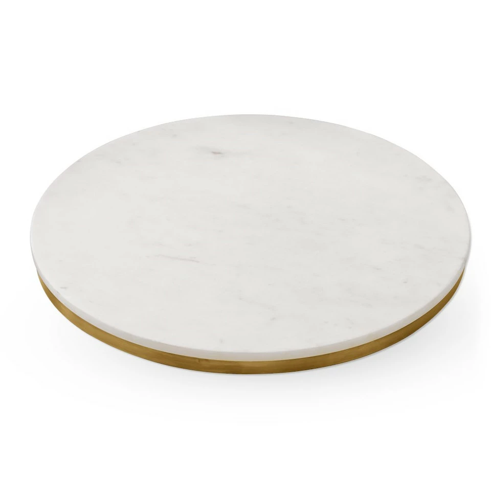 Our eye-catching serving board creates chic presentation for everything from appetisers and cheese to drinks and desserts. Handcrafted by skilled artisans using only the finest materials, the white marble board is trimmed with a band of stainless steel that has an antiqued brass finish.