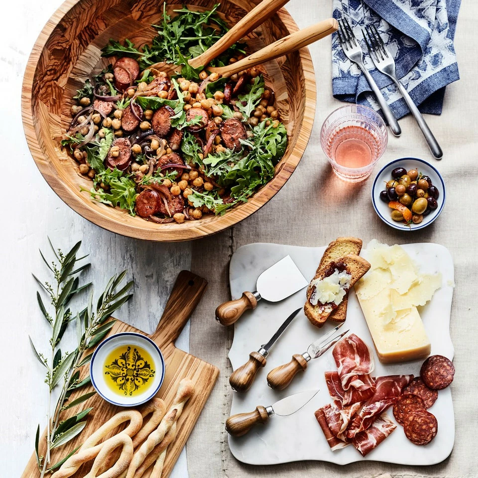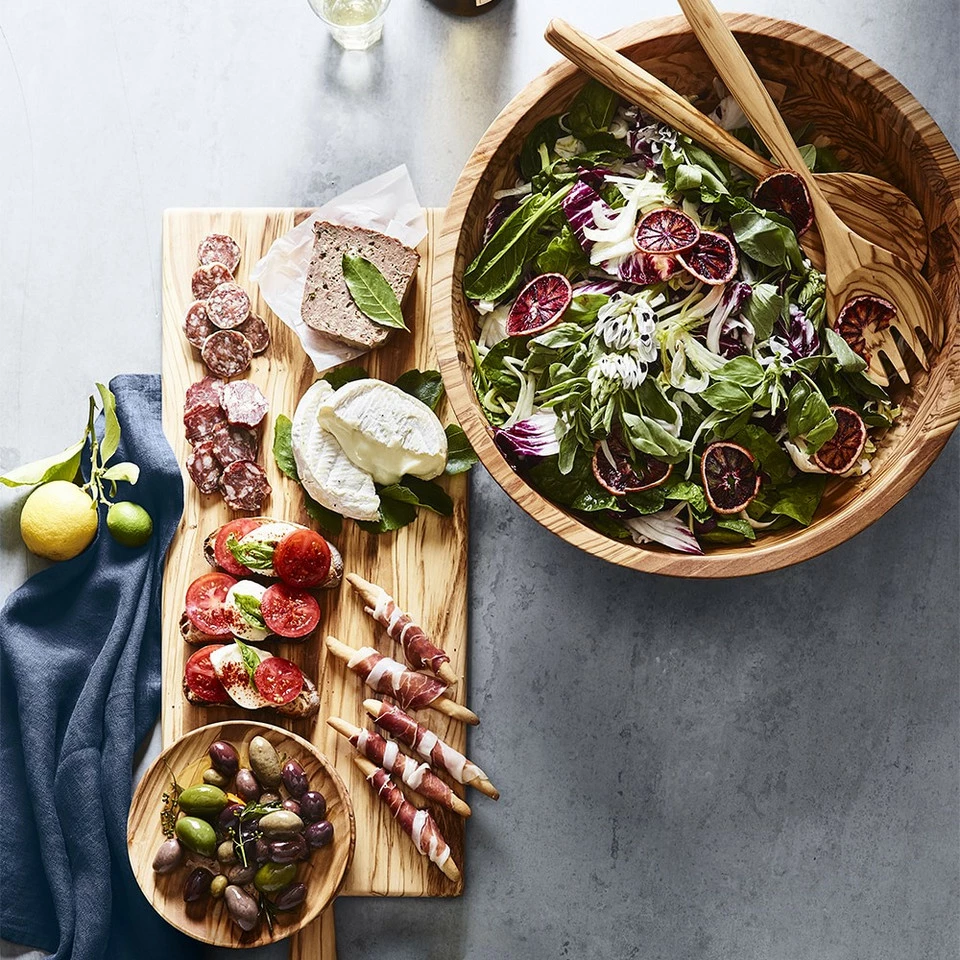 With its bold grain and richly varied colour, our Italian olivewood salad bowl makes an eye-catching backdrop for everything from tossed greens to fresh popcorn or pasta salad for a crowd. Artisans hand turn the bowl from end-cut rings of wood, showcasing the dramatic variations in tone and pattern that make every bowl one of a kind.