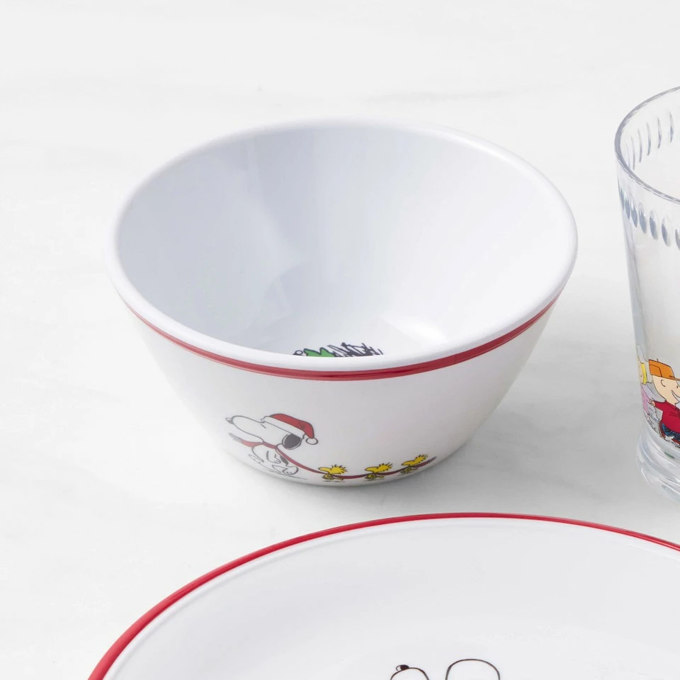 Gather around the table with Snoopy, Charlie Brown and the Peanuts™ gang. This kid-friendly set features festive scenes of the iconic characters created by legendary cartoonist Charles M. Schulz. Made to resist scratching and shattering, the dishwasher-safe set includes a plate, a bowl and a tumbler.