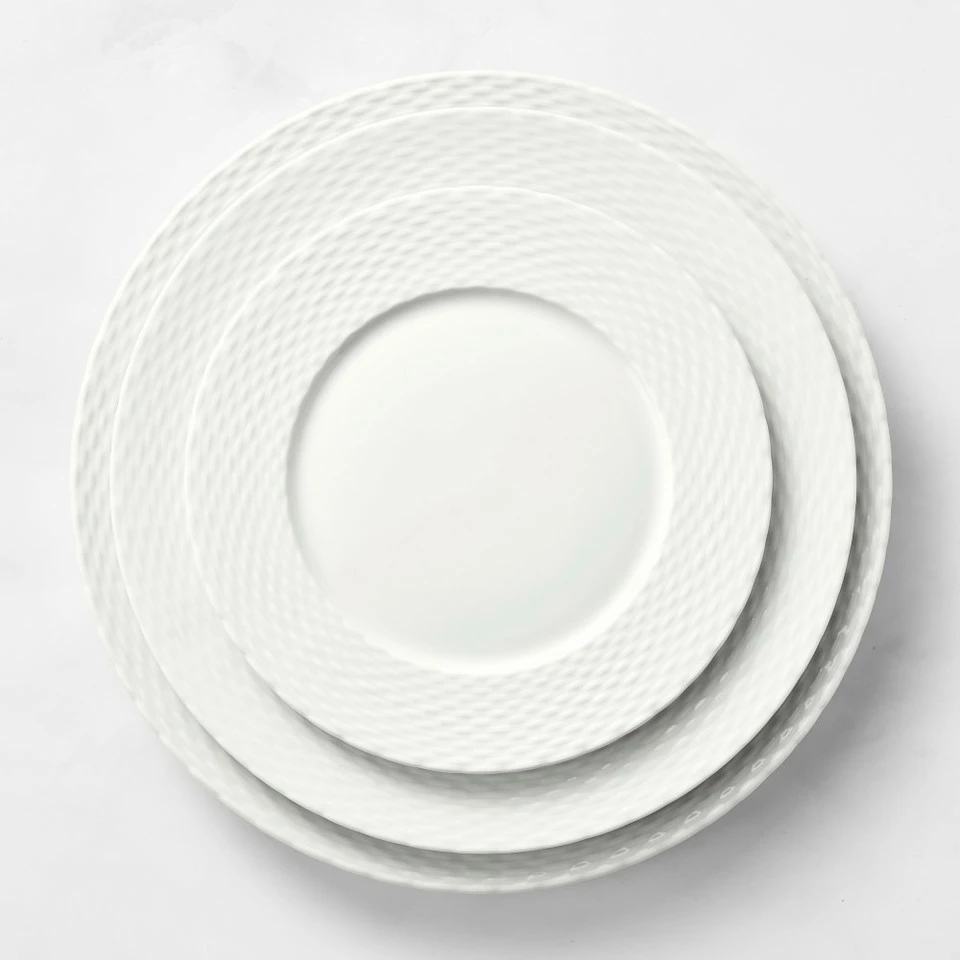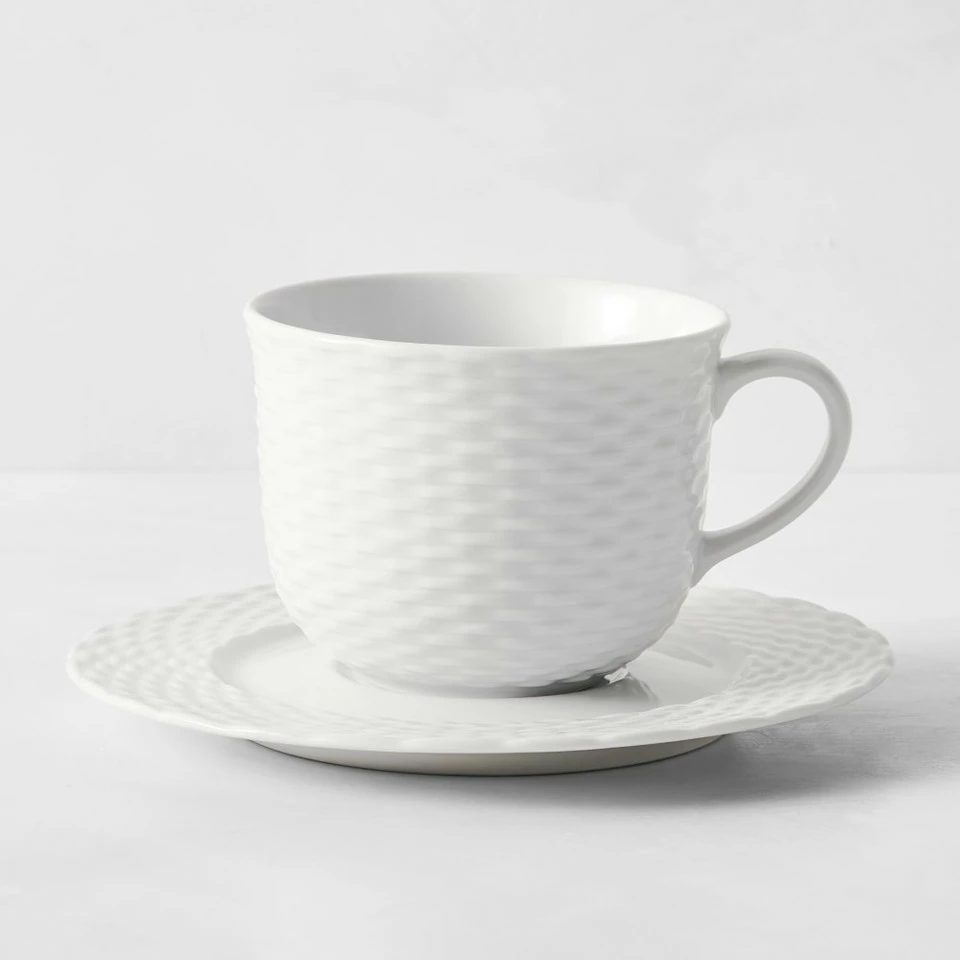 This dinnerware celebrates the beauty in everyday objects; in this case, the willow gathering baskets used in French kitchen gardens. Pillivuyt, the French manufacturer of fine porcelain, developed it for us from one of their archival patterns. New moulds were hand carved by a single artisan in order to ensure consistency of detail. Complementing both casual and formal table settings, the versatile dinnerware is made of porcelain, which is as durable as it is beautiful. Microwavable; oven and dishwasher safe. 266 ml cup and 16 cm saucer. Made in France.