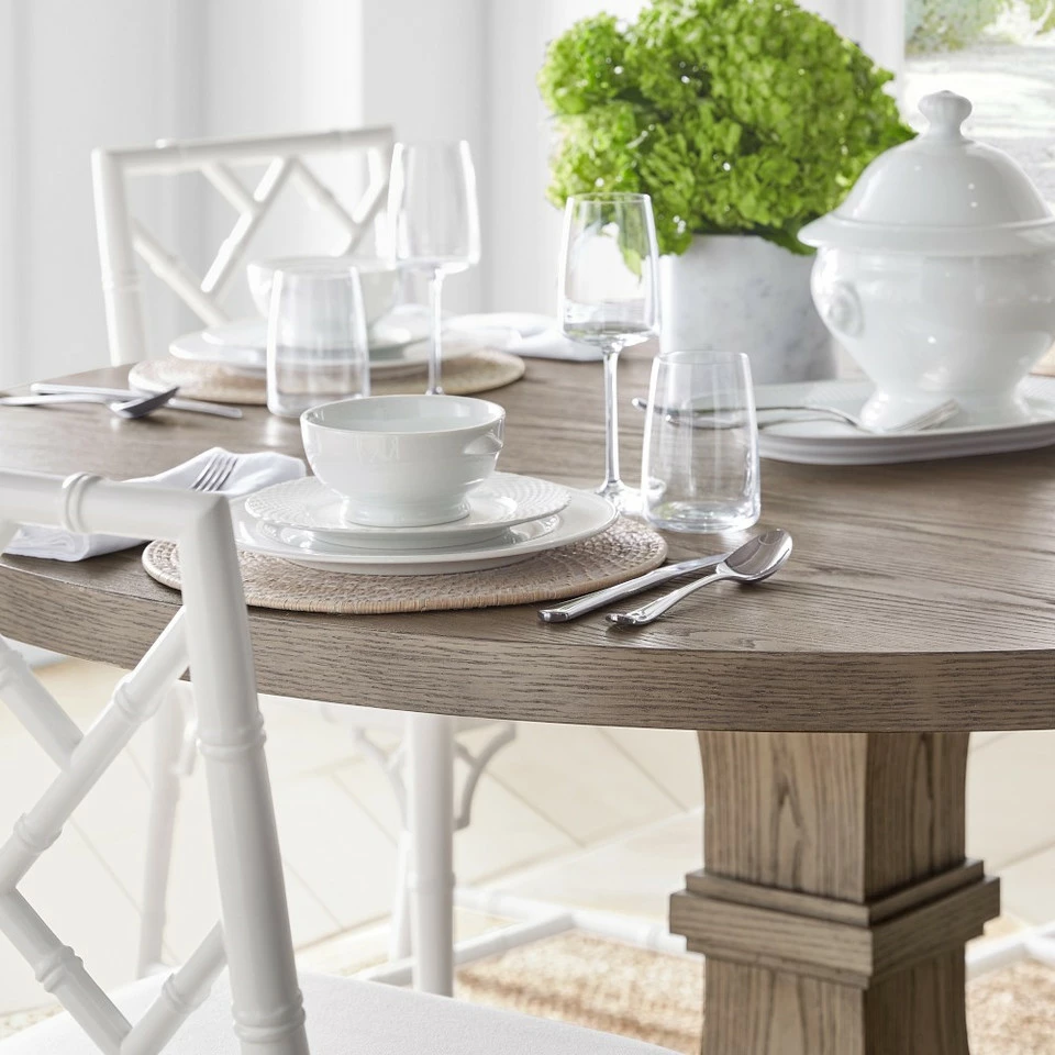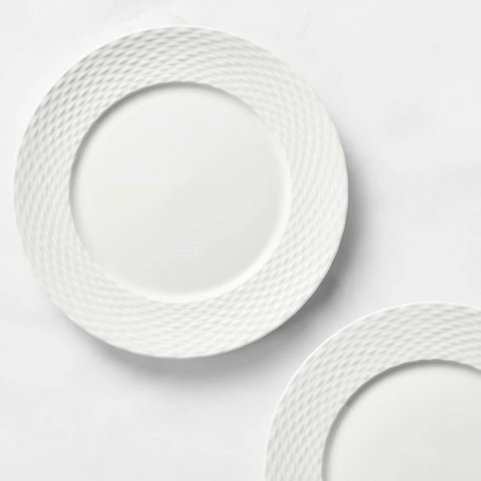 This dinnerware celebrates the beauty in everyday objects; in this case, the willow gathering baskets used in French kitchen gardens. Pillivuyt, the French manufacturer of fine porcelain, developed it for us from one of their archival patterns. New moulds were hand carved by a single artisan in order to ensure consistency of detail. Complementing both casual and formal table settings, the versatile dinnerware is made of porcelain, which is as durable as it is beautiful. Microwavable; oven and dishwasher safe. 22 cm salad plate. Made in France.