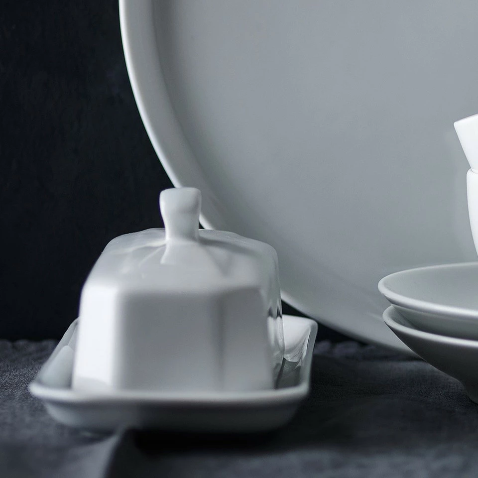 A French classic, this white porcelain butter dish has been a favourite for generations of family meals. As handsome as it is durable, it pairs easily with formal or casual napery, cutlery and glassware, and patterned pieces. Thanks to an innovative formulation of various clays, the porcelain pairs a delicate appearance with superb strength. Made in France by Pillivuyt, a company respected for fine porcelain tableware since 1818. Dishwasher safe. 19 cm x 10 cm x 8 cm high.