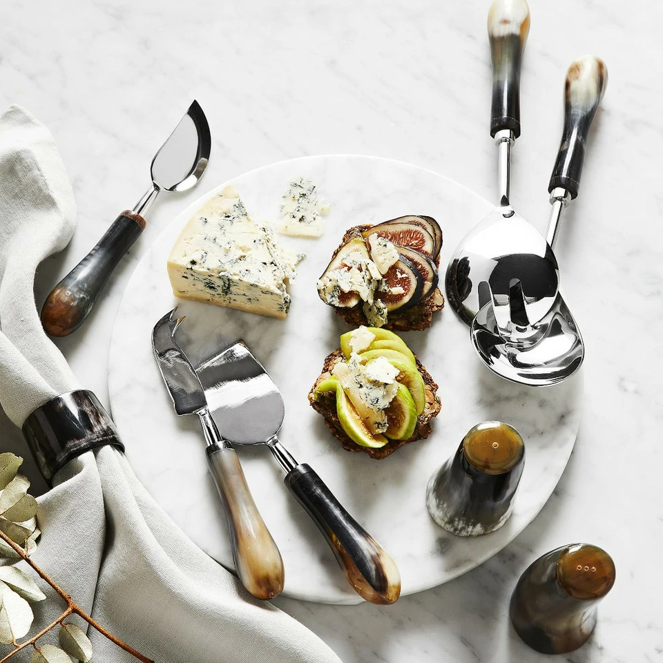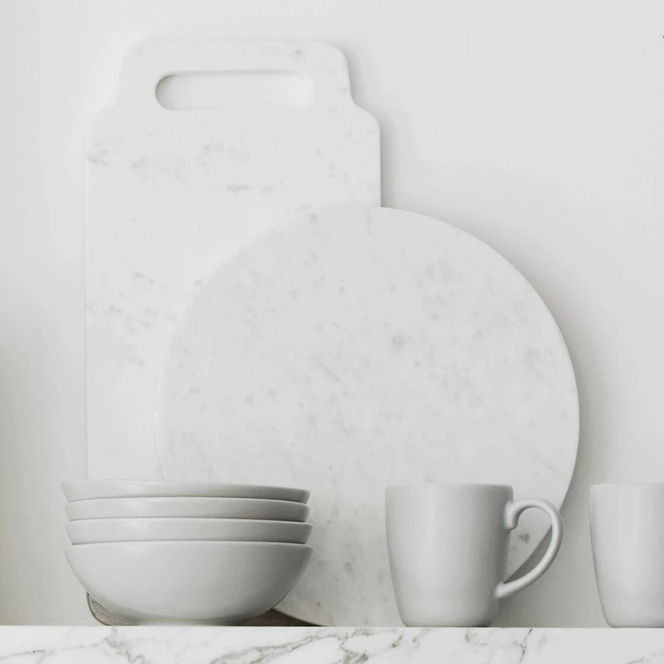Our infinitely versatile serving board offers chic presentation to everything from appetisers and cheese to drinks and desserts. Handcrafted by skilled artisans using fine white marble, the one-of-a-kind board complements any style of cheese knives and plates, and makes an excellent host gift.