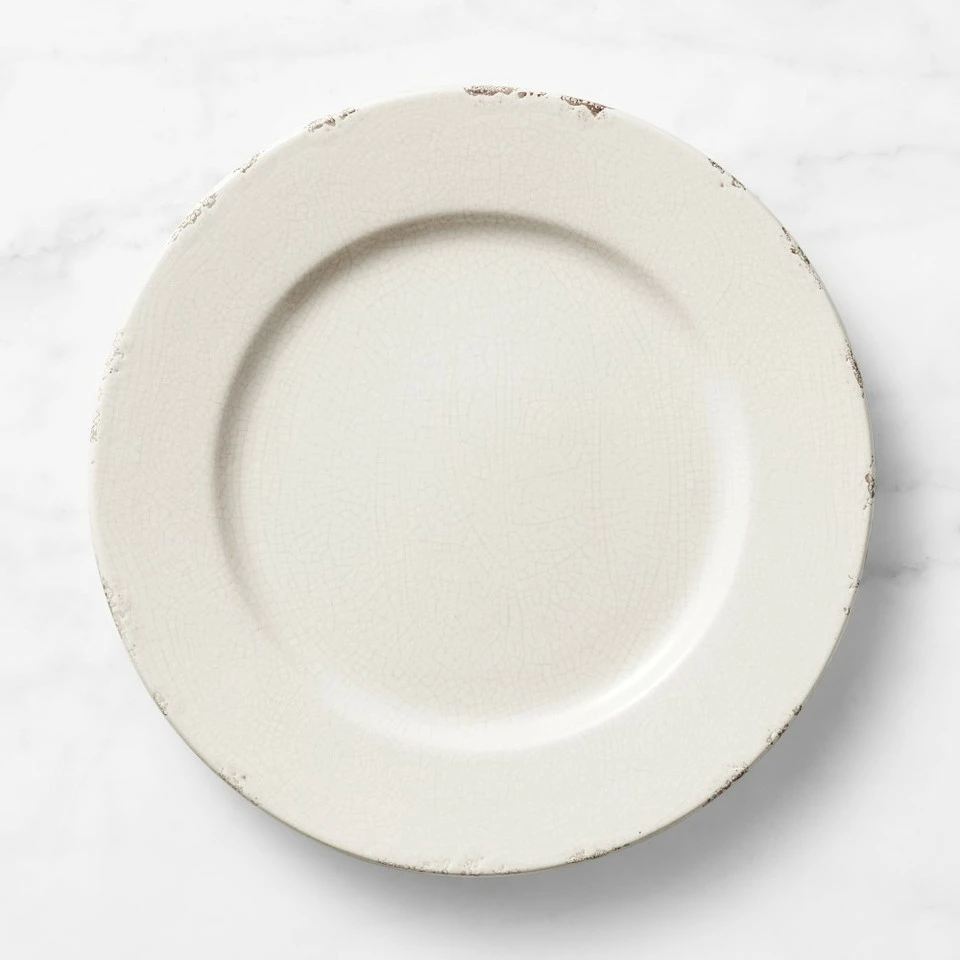 Handcrafted by Italian artisans, our Rustic dinnerware evokes the beauty and character of vintage European ceramics. A warm crackle glaze and hand-weathered edges give each piece of stoneware a one-of-a-kind patina, creating a beautiful backdrop for family meals and relaxed entertaining.