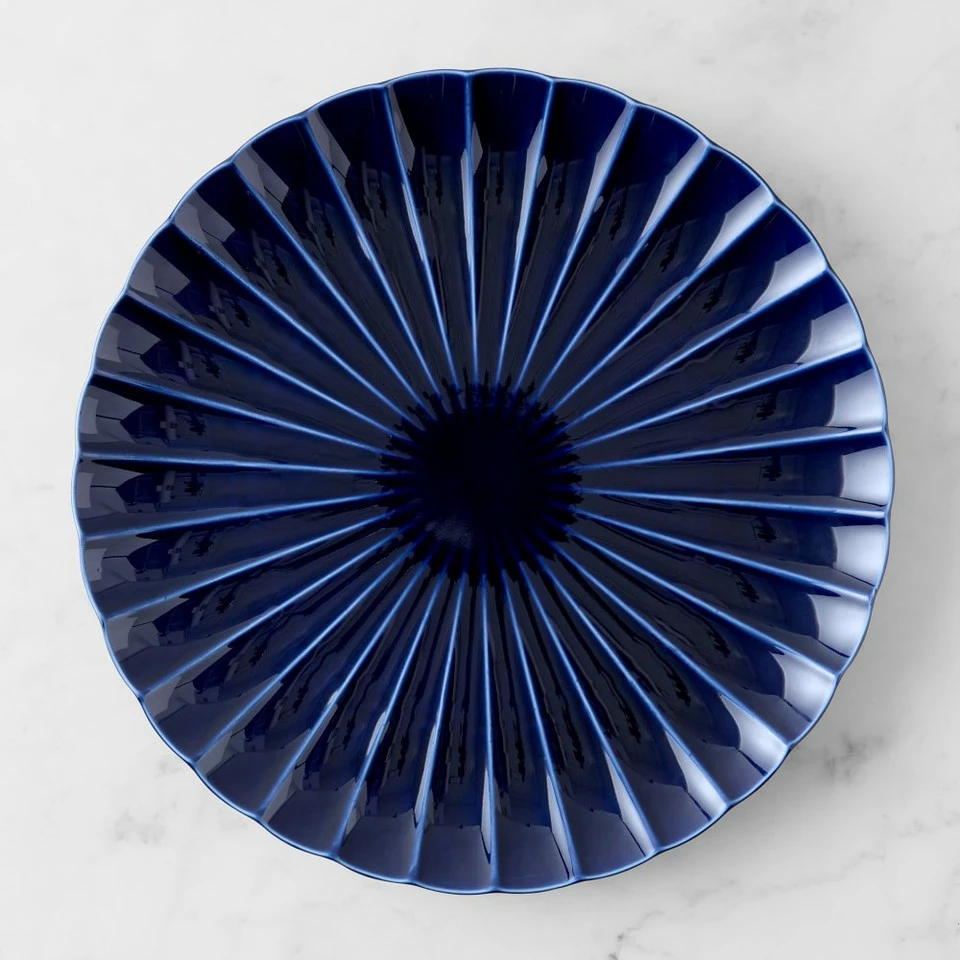 A radiating scalloped design and a stunning blue glaze give this stoneware collection a graceful and balanced look. The charger provides a lovely backdrop for place settings and also comes in handy as a platter for hors d’oeuvres.