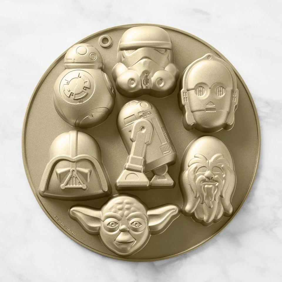 - Produces seven single-serving cakes shaped like Yoda, Darth Vader, C-3PO, R2-D2, Chewbacca, a Stormtrooper and BB-8.