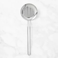 Life in the kitchen is easier when you use the right tool for the task. Equipped with a long handle to keep your hands away from the heat, our sturdy skimmer has a shallow, perforated head that’s ideal for removing hot foods from boiling water or oil.